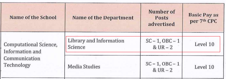 Post               Assistant Professor ( Library and Information Science)